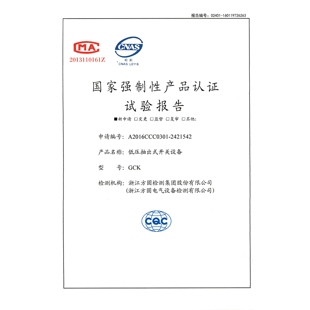GCK低压抽出式开关设备 检验报告
